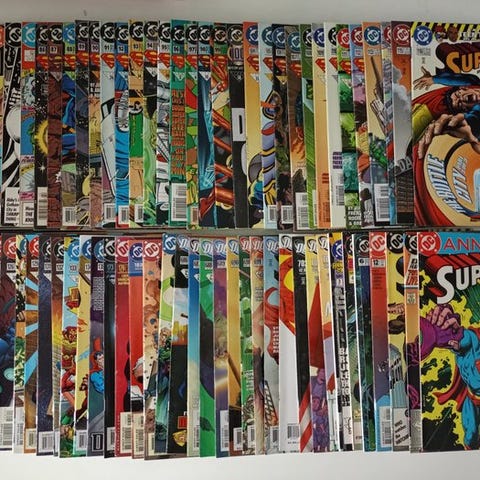 Superman vol.2 fra DC Comics, første udgave, 57 tegneserier fra 1987 til 1994, kunstner John Byrne, tilstand rimelig. Klik på den blå "gå til varen" knap, for at købe eller byde på denne vare. Den samlede pris vil blive vist inden du afgiver dit bud.