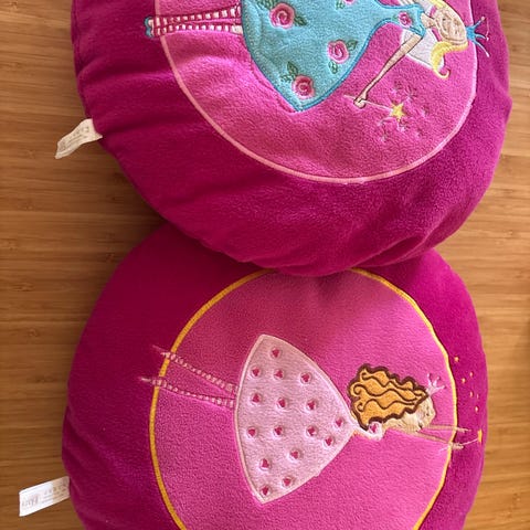 Disney Princess pyntepude i hjerteformet design. Puden er pink med motiv af en Disney-prinsesse på forsiden og langhåret, frynset stof på bagsiden. Ca. 40 cm bred. Velegnet som pyntepude på børneværelset eller som dekorativ pude i sofa eller seng.