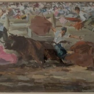 Maleri af Antonio Casero (Spanien, 1897-1973). Akvarel på karton, "Majeza", 1939.