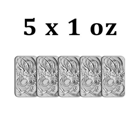 10 x 2021 1 oz $1 AUD Australien 9999 fint sølv rektangulær drage mønt-bar BU