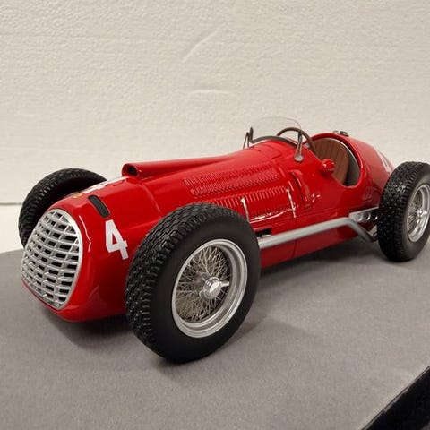 De Ferrari 553 Squalo er en ikonisk Formel 1-bil fra 1950'erne, kendt for sin karakteristiske 'haienæse' og et vigtigt kapitel i den tidlige Ferrari-racehistorie. Denne udgave hylder Fangios sejr i Spanien og er en fast del af high-end F1-samlinger.