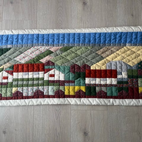 Opgrader dit hjem med dette fantastiske håndlavede vintage patchwork tæppe. Dette unikke stykke er i fremragende vintage stand, nyligt rengjort og klar til at blive nydt.
