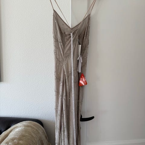 Anden kjole, Grifflin, str. L, Lys, Mix, Ubrugt, GRIFFLIN PARIS, kjole i hvid og mocca farvet strækbart blankt stof, fungere med og uden bælte