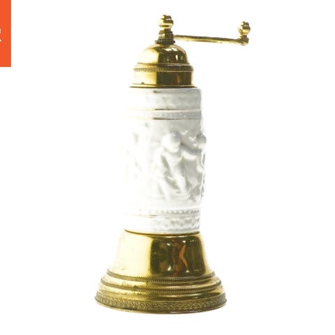 Ekstraordinær peberkværn i designet af en champagneflaske (G.H. Mumm / Cordon Rouge).