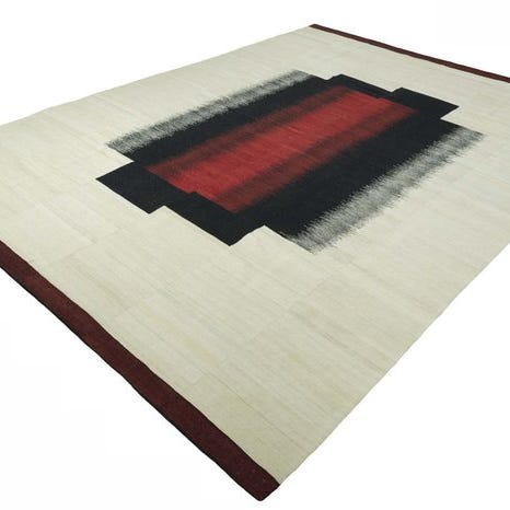 Moderne håndvævet kilim med tydeligt geometrisk formsprog.