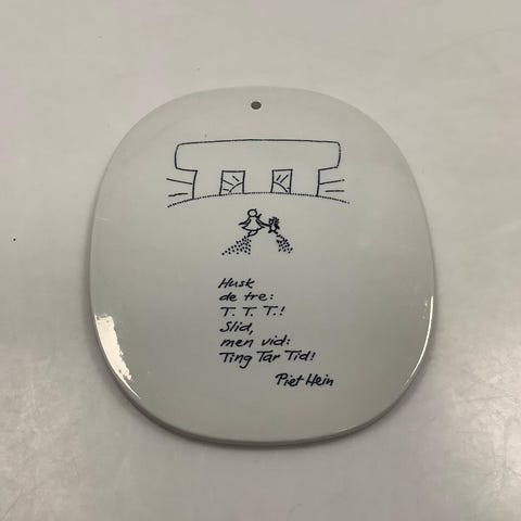 Royal Copenhagen Piet Hein Gruk Platte fra 1954 - Den som ved små ting hæfter sig lar store ugjort efter sig - Piet Hein Måler 17,5 cm x 14 cm (6.89 inch. x 5.51 inch.)