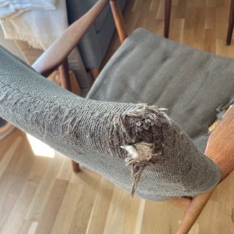 Designet af Birte Iversen og produceret af A. J. Iversen. Polstring med defekt.