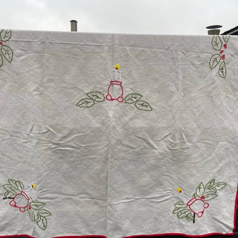 Patchwork juledug, Stor fin ny dug lavet i patchwork. Måler ca.316 cm. i længden og 160 cm. i bredden. Farven er rigtig julerød hvilket kan være svært at se på billederne.