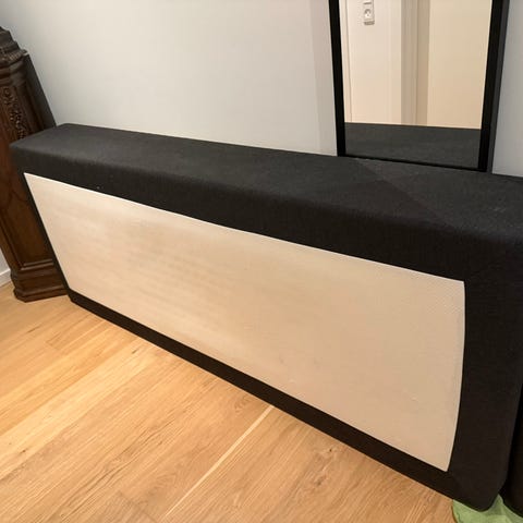IKEA boxmadrasser i grå farve. Madrasserne står på hvide ben, som er monteret direkte på rammen. Velegnet som enkeltseng eller som del af en dobbeltseng ved kombination med den tilsvarende madras ved siden af. Passer til standard sengetøj og kan bruges i soveværelse, gæsteværelse eller som ekstra seng. Der er synlige naturlige skjolder ved hovedenden, som ikke er forsøgt vasket af. Sengene kan afhentes gratis på adressen frem til lørdag. Madras 1 er fast, madras 2 er blød.