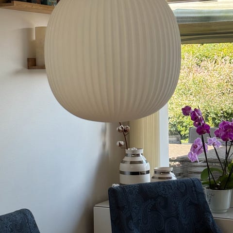 2 stk. Ikea Rimfrost pendellamper i glas og metal – flot stand