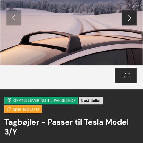 Sælger mine tagbøjler til en Tesla model 3, da jeg har solgt bilen.