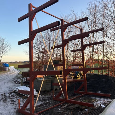Stålreol egnet til lageropbevaring. Reolen består af metalstel med flere hylder, som kan bruges til opbevaring af fx værktøj, materialer og kasser i garage, værksted eller lager. Velegnet til organisering af forskellige typer udstyr og emner. Højde ca 4 meter og kan bære 2500 kg pr hylde og er letvægts så er fint og rykke rundt på.