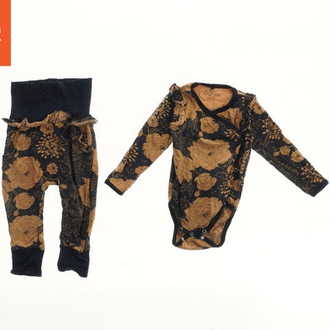 Langærmet bodystocking med et flerfarvet blomstermønster. Den har trykknapper ved skulderen og i bunden, hvilket gør den nem at tage af og på. Stoffet ser blødt og komfortabelt ud.