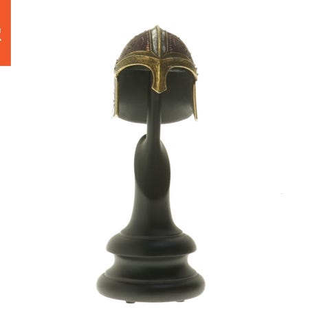 Denne genstand er en kopi af Ork hjelmen fra filmen Ringenes Herre: Kongens Genkomst. Hjelmen er installeret på en sokkel og har en rustik, bronzefarvet overflade. Den leveres med original emballage, der viser hjelmen og filmens logo. Størrelsen på hjelmen er 16 cm.