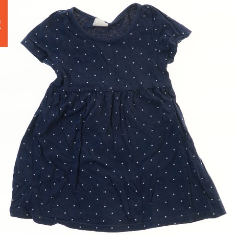 Denne pigekjole er lavet af et lilla stof og har et bølgemønster over hele kjolen. Den har korte ærmer med en let rynket effekt ved skuldrene. Kjolen har en rund halsudskæring og en elastisk talje, der giver en let og behagelig pasform.