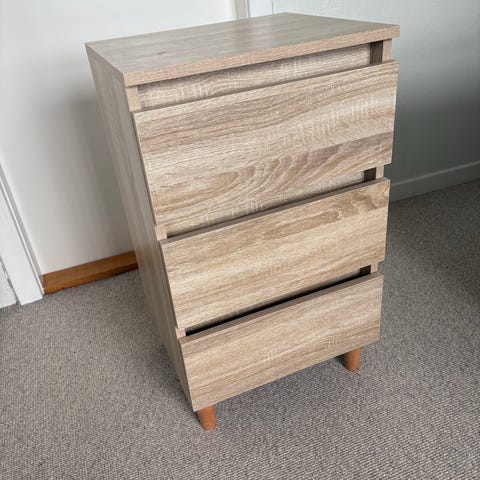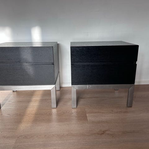 Sælger disse 2 sengeborde i eg med sorte metalben. De er købt hos Ilva.