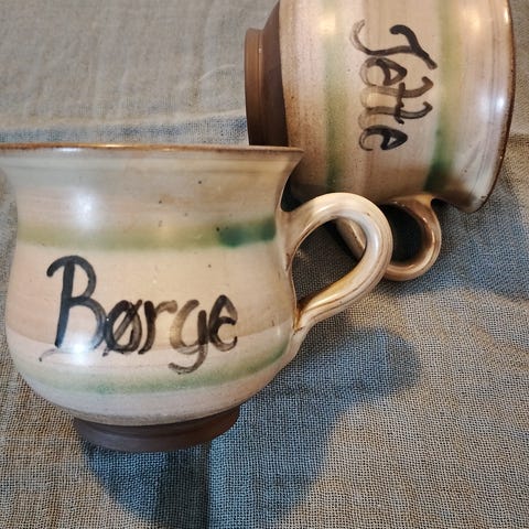Broste Copenhagen Berit krus i grøn stentøj. Sættet består af to krus med hank. Krusene har rillet overflade og lille mærkat med modelnavn på siden. Velegnet til varme drikke som kaffe, te eller kakao og kan bruges i dagligdagen eller som en del af en stelserie i lignende nuancer.