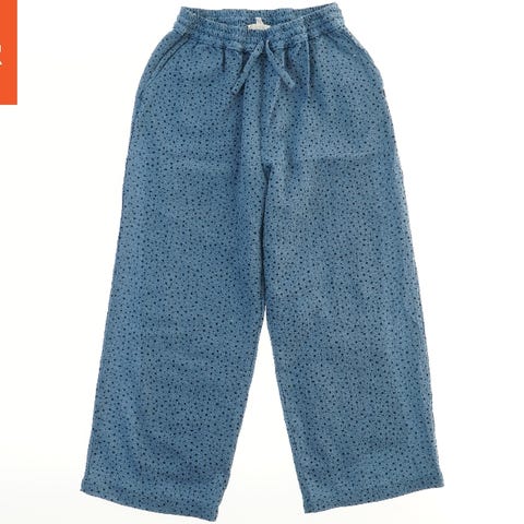 Bukser med striber i forskellige farver. De har elastik i taljen og et snoretræk foran. Designet inkluderer lommer og ribkanter ved anklerne.