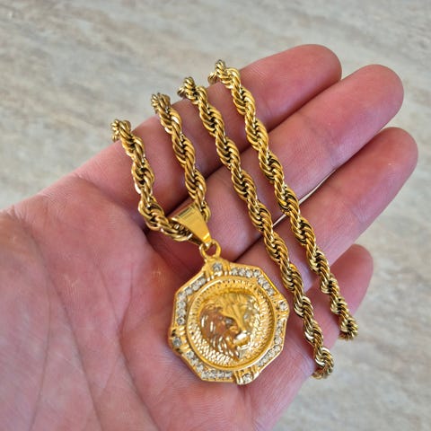 Goldfilled - 4mm rope chain, lavet klassisk karabinlås og unikt håndlavet vedhæng! Kæden er 60cm.