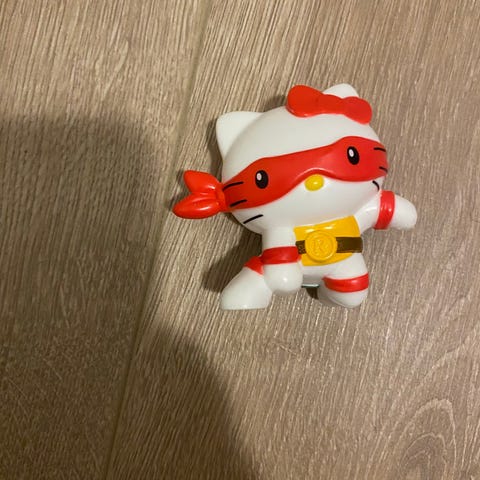 Sanrio Hello Kitty legesæt med flere små plastfigurer og tilhørende huse og køretøjer i forskellige farver. Sættet omfatter blandt andet små huse, boder, bil, fly og diverse tilbehørsdele med Hello Kitty motiv. Delene er fremstillet i plast og er i miniaturestørrelse, velegnet til bordleg og rolleleg med figurerne.
