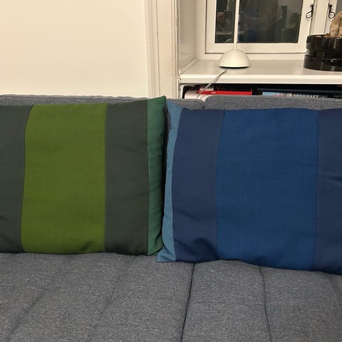 Normann Copenhagen pyntepude i grå tekstil. Pudebetrækket har vævet struktur og diskrete søm- og feltopdelinger på forsiden.