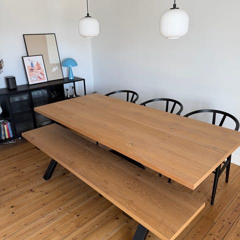 Super flot plankebord i mørk Eg fra Sit and Sleep, nu Boaa.