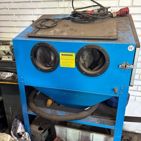 God stor sandblæsnings kabine med indbygget støvsuger (400v).