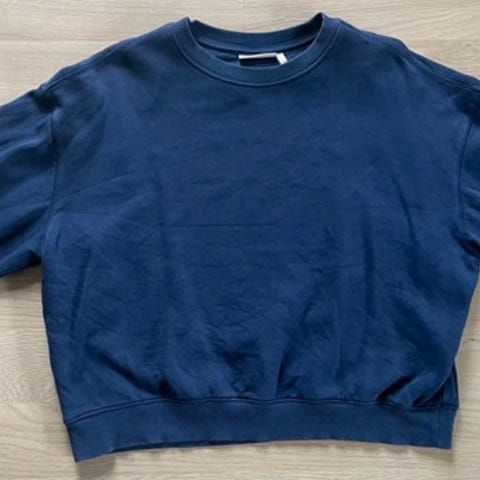 Weekday sweater til kvinder i str. M. Strikken er blå og fremstillet i uld og bomuld.
