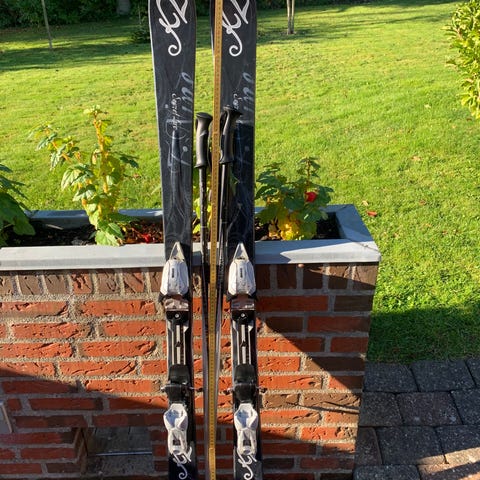 Alpin ski 168 cm, bindinger, stave 125 cm, opbevarings/transport taske op til 180 ski (plads til 2-3 sæt i tasken.