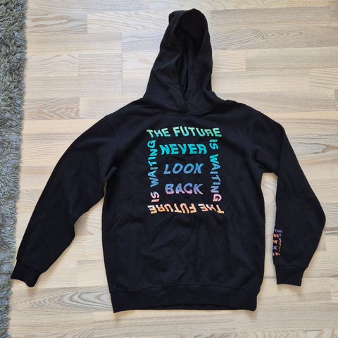 Hætte-bluse har en lille bitte farveklat på maven.