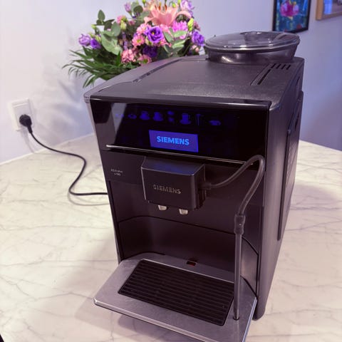 Siemens EQ fuldautomatisk espressomaskine i sølv og sort.