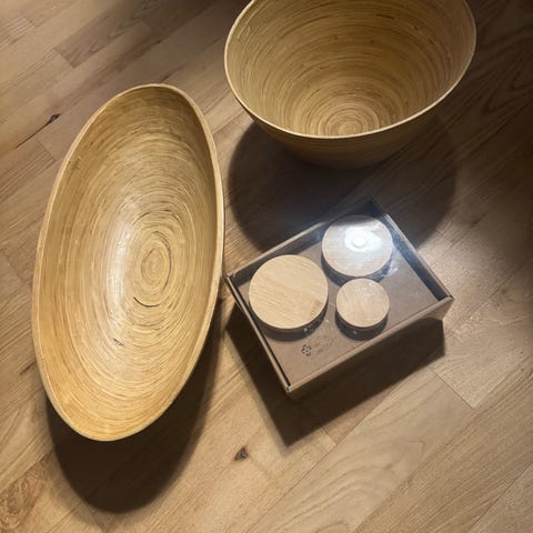Tags: bambus, skålsæt, dekoration, opbevaring, rustik