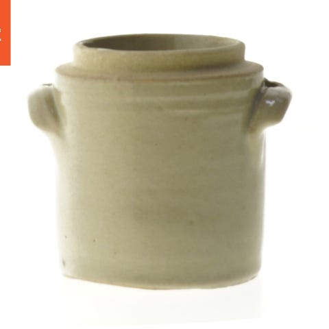 Denne er en krukke fremstillet af keramik, med en primær grøn farve. Krukken har en låg med en lille knop på toppen, der gør det let at tage af og sætte på. Den forsegler sikkert indholdet, ideel til opbevaring af småting eller som en dekorationsgenstand i køkkenet. Den har en glat, blank overflade og måler 11 cm i diameter.