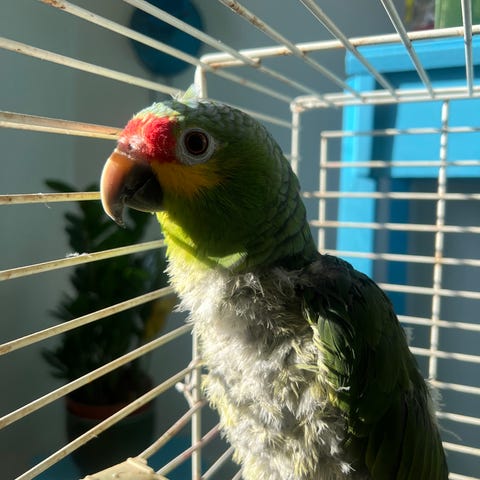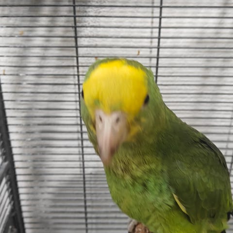 Hun er en glad aktiv fugl og taler meget og ser gerne hun kommer et sted hen hvor der er andre ara papegøjer.