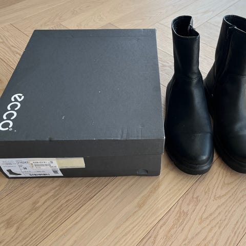 Disse er lange sorte læderstøvler i størrelse 36. Støvlerne har en glat overflade og er udstyret med lynlåse på indersiden for nem på- og afklædning. Der er også spænder øverst for ekstra justering og stil. Støvlerne leveres i en original æske med mærket Ecco tydeligt vist på indpakningen. Modellen er Ecco Saunter