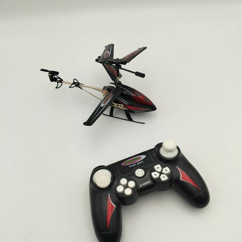 KidzTech Top Racer fjernstyret motorcykel i rød og sort med førerfigur. Modellen styres via medfølgende sort fjernbetjening med to styrepinde og tænd/sluk-knap. Egnet som legetøj til børn, der ønsker at køre og styre en motorcykel trådløst på gulv eller andre jævne overflader.