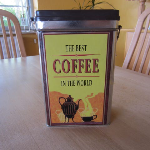 Retro kaffedåse med kvinde motiv (str. Ø 11 cm længde 20 cm)
