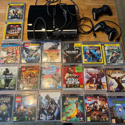 Sony Playstation 3 konsol med controllere og spil