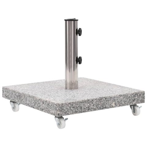 Denne parasolfod er lavet af stærk granit og vejer 30 kg, så den er yderst stabil og sørger for, at din parasol står stille, selv når det blæser. Parasolfoden har to låsebolte for at holde parasolstangen på plads. Der medfølger en adapter for at gøre foden egnet til parasolstænger med en diameter på 38/48 mm. Parasolfoden kan desuden flyttes rundt takket være de fire hjul.