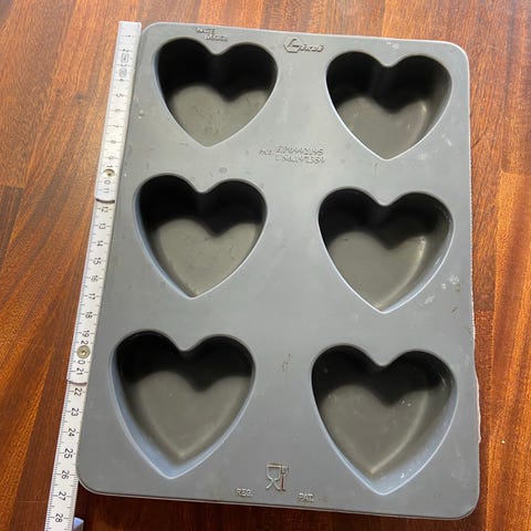 Sæt med silikone muffinforme i forskellige farver. Formene er hjerteformede og måler 3x9x7,5 cm. De er velegnede til bagning og kan genbruges flere gange. Farverne inkluderer sort, blå, grøn, turkis, rød og hvid.
