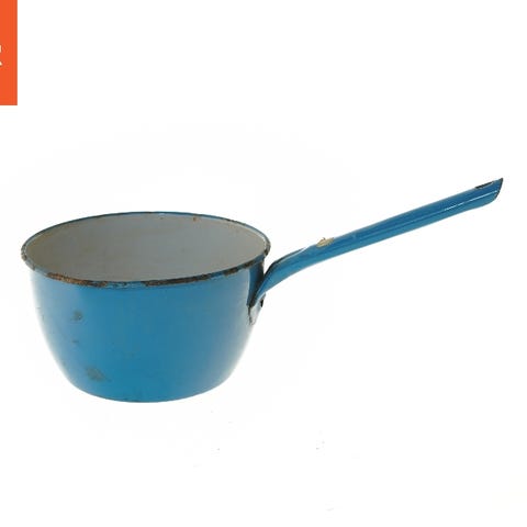 Blå emaljeret gryde med håndtag (str. 16 cm)