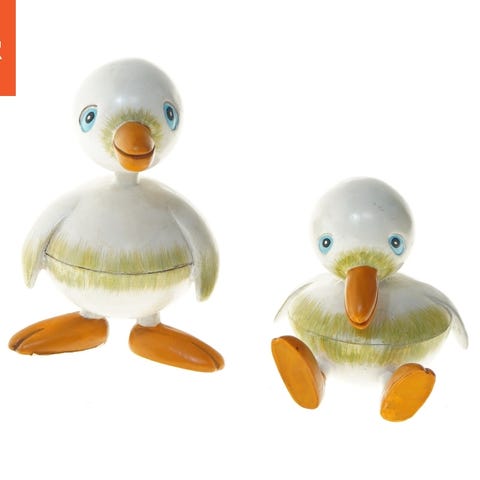 Denne vare er en lille figurformet som en and, der er 11 cm høj. Figuren har en hvid krop med orange fødder og næb samt blå øjne. Farverne på kroppen inkluderer også grønne nuancer. Figuren er lavet af et hårdt materiale og er designet til dekorative formål.