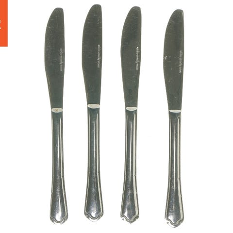 Dette er et sæt af 7 rustfrie stål knive. Knivene har en slank og elegant form med et let buet håndtag, ideelt til middagsservice. De har en glat og skarp kant, perfekt til at skære forskellige fødevarer.
