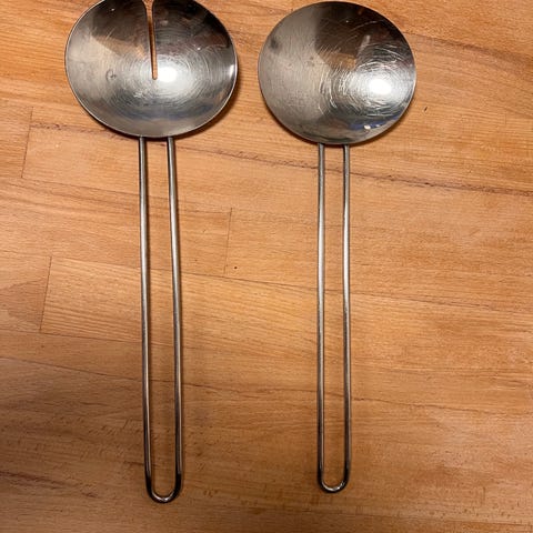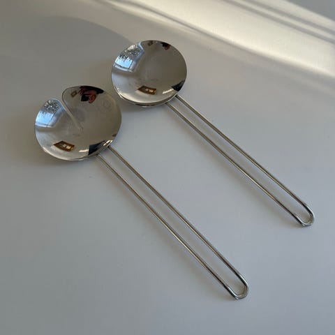 Dette er et sæt bestående af 11 knive, hver med en længde på 24 cm. Knivene har et moderne design med buet blad og håndtag. De er fremstillet i metal, hvilket giver et stilfuldt og elegant udseende. De er velegnede til brug i køkkenet eller som en del af et bestiksæt til middagsbordet.