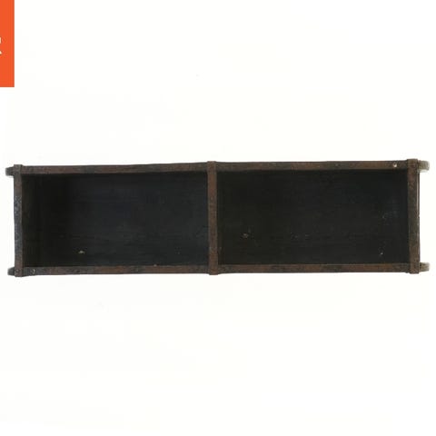 En dekorativ opbevaringskasse lavet af træ med metalbeslag. Den har en låsemekanisme, og indvendigt er der et rum til opbevaring. Kassen er rektangulær og måler 25,5 x 15,5 cm. Den har detaljerede metaludsmykninger på toppen og siderne.
