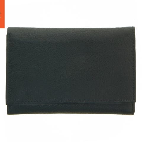 En sort pung af læder med lynlås på forsiden. Pungen har en størrelse på 11,5x7,5 cm og er udstyret med en ekstra lynlåslomme. Designet er enkelt og praktisk, ideelt til at opbevare kontanter og små genstande. Pungen har en lille metalring i hjørnet til vedhæftning.