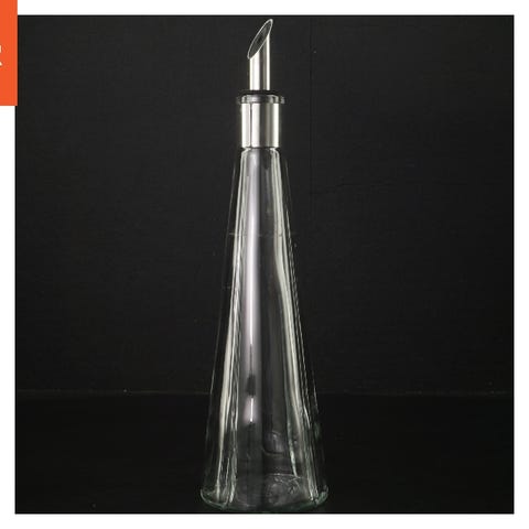 Denne glasvin karaffel kommer med en stilfuld sort låg, der har en skænke funktion. Den har en slank og moderne design, perfekt til at servere vin ved bordet. Bunden af karaflen viser et mærke, som ikke umiddelbart er genkendeligt.