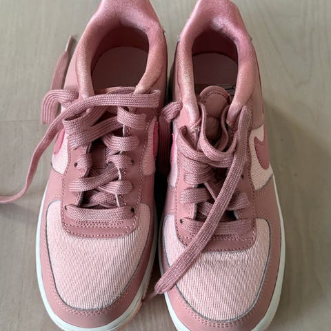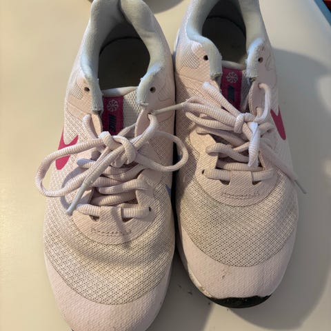 Nike sneakers til piger i str. 37. Højskaftet model med snørelukning. Overdel i glat og præget materiale i lilla og hvid med lys Swoosh-logo på siderne. Ydersål i gummi med mønster for bedre greb. Velegnet som hverdagssko eller fritidssko til børn/piger, der bruger str. 37.5