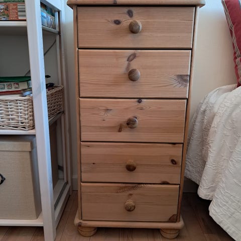 Super flot Entremøbel / Kommode / natbord med 1 skuffe. I egetræ. Mål: b: 60 d: 33 h: 42 cm. Skuffen er 12,5 cm. Bordet fremstår i flot stabil og god stand uden nævneværdige brugsspor og kan leveres i Københavnsområdet for en lille mere betaling.