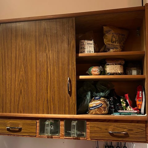 Super flot københavnerskab med 2 skydelåger i glas og nederst tre skuffer.
